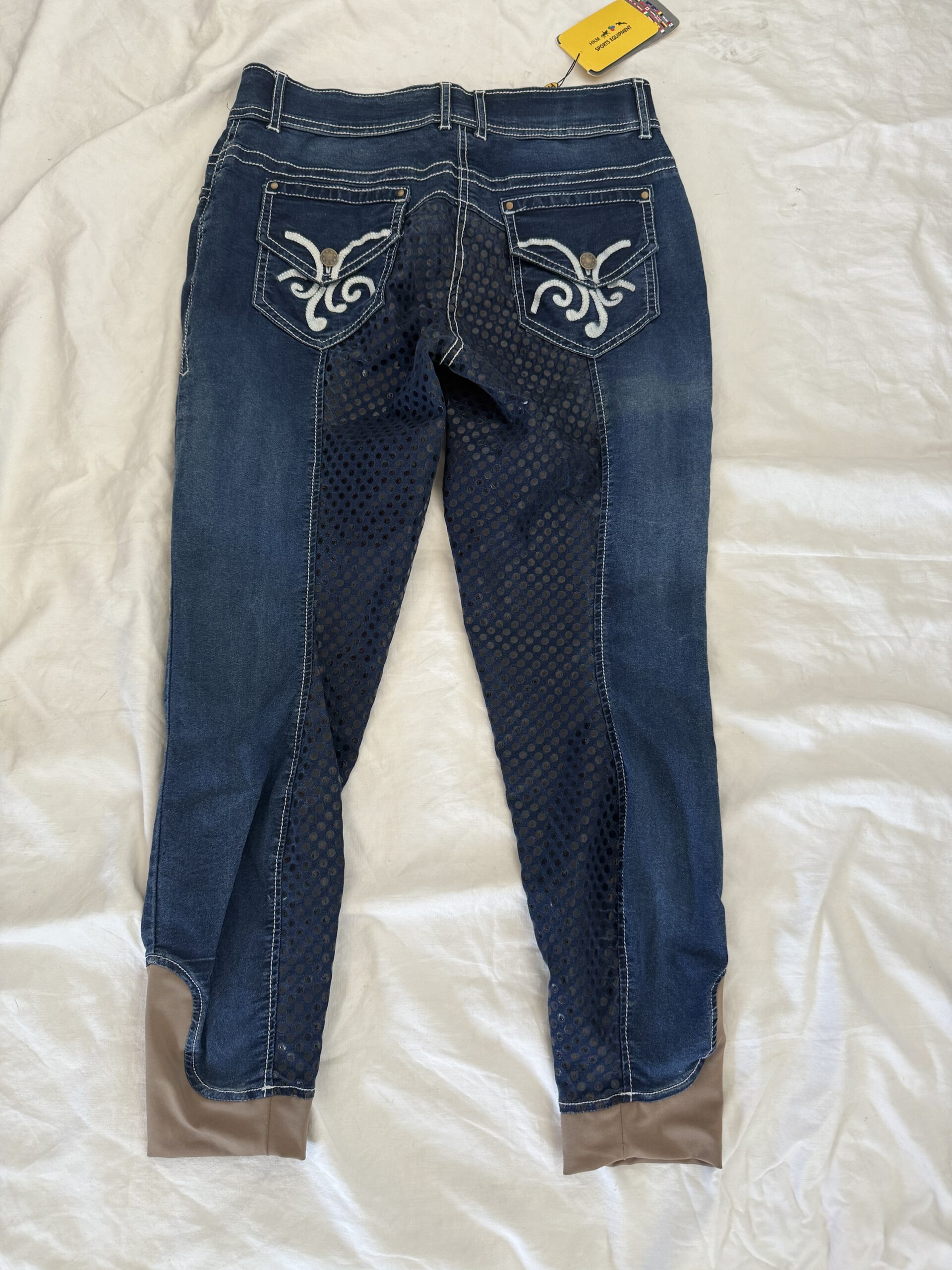 HKM Vollbesatzreithose mit Grip in Jeansoptik. Die Reithose ist neu mit Etikett.
